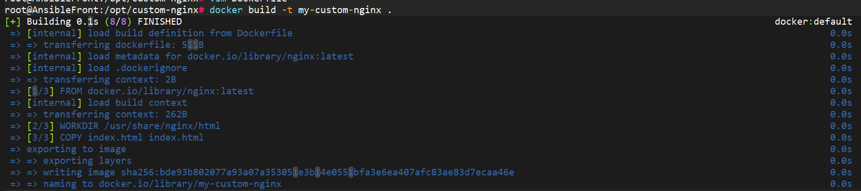 CMD ["nginx", "-g", "daemon off;"]在包含Dockerfile与index.html的目录下执行docker build